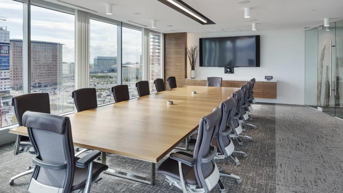 會(huì)議室的設(shè)計(jì):通過以上的設(shè)計(jì)介紹,可以知道會(huì)議室位于接待空間的內(nèi)側(cè),且是一個(gè)獨(dú)立的空間,會(huì)議空間的設(shè)計(jì)以簡(jiǎn)潔、明亮為主,這樣設(shè)計(jì)的目的,就是希望將光更好的加以闡述,光日復(fù)一日、從不間斷,這也是設(shè)計(jì)師希望通過設(shè)計(jì)傳達(dá)的信息,希望企業(yè)可以長(zhǎng)盛不衰。