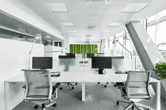 設計師在新的辦公室中劃分了包括用于非正式會議的工 作區、配備視頻會議的會議室。獨立會議室、項目室、圖書館和專門用于一對一會議和重點活動的空間。