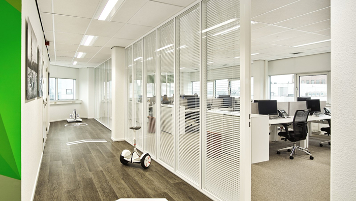 走廊的設計:代步車在這里馳騁,設計師的想法就是讓員工與客戶都能親自感受,因為產品本身就是讓人用的,但往往很多企業的產品內部員工都是無福消受的,設計師認為這是不對的,因為只有員工親自感受過之后,才能提出自己的想法與看法,在使用的過程中優化他們、改進他們。