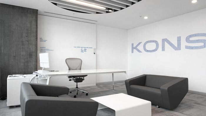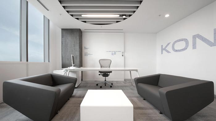 總經理辦公室的設計:此處僅有20平方,但是在設計師的設計手法之下,一切都變的不同,白色讓整個空間在視覺上向外延伸,家具的擺放既簡單又實用,兼顧了辦公與接待,在設計師的眼中,設計師本身就是化繁為簡的一個過程,設計師要做的就是將其簡化到極致。
