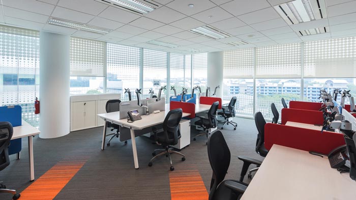 辦公區域的設計:此處四周全部是以落地窗組成,這樣設計的目的就是希望,讓陽光照入空間的每一個角落,讓空間完全沒有死角,這樣的空間給人的第一感覺就是溫暖,在設計師看來這也是如今社會最缺少的,設計師希望讓陽光給每一個人以溫暖。