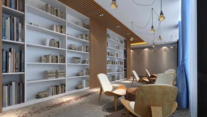 閱讀區域的設計:企業作為百年老店,傳承了一代又一代,更加了解學習的重要性,這就是此處設計的初始點,設計師認為企業之所以可以存在如此之久,其原因就是不斷地學習、不斷地總結,此處就是讓員工在這里有一個好的學習氛圍,在這里不斷完善自己,通過學習不斷提升自身。