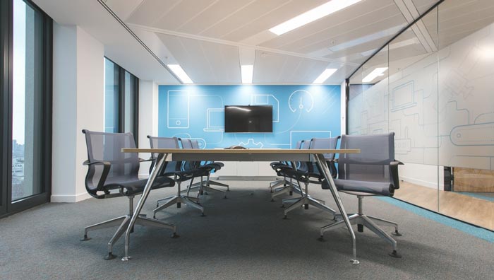會議室的設計:在設計師一直的想法當中,都不建議將會議室設計的十分復雜,因為復雜會影響人思路的延伸,會讓人思想感覺凌亂,視覺上感到疲勞,此處給人的第一感覺就是明亮、大氣,這也是設計師希望看到的,設計師希望這樣的空間設計與企業(yè)的發(fā)展相輔相成。