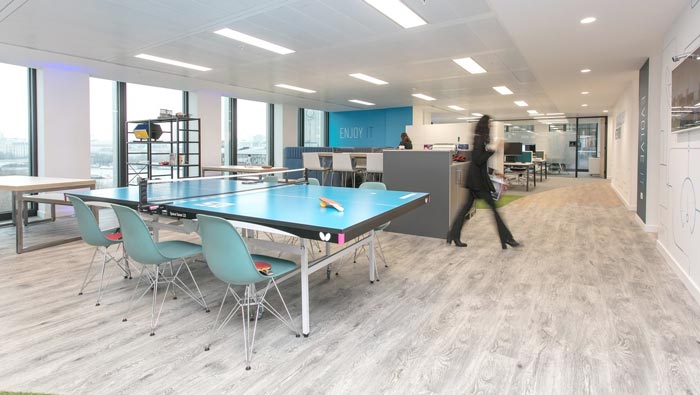 娛樂區(qū)域的設計:乒乓球是室內活動的最佳對象,設計師希望讓勞累的員工可以在這里打一場乒乓球競賽,在這里讓員工疲勞的神經(jīng)得到暫時的放松,讓員工在這里既可以鍛煉身體,同時也可以提高企業(yè)的內部環(huán)境,讓員工與員工之間相處的更加友好。