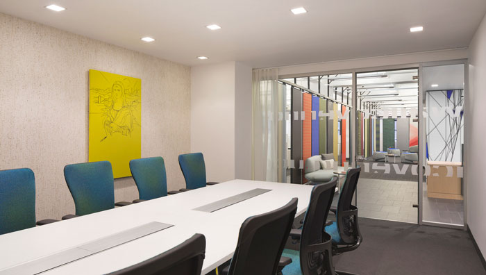 會議室的設(shè)計:會議區(qū)設(shè)計首先要保證的就是簡潔,這是設(shè)計師對于會議室的定位,在設(shè)計師看來會議是企業(yè)發(fā)展的重要組成部分,一個安靜、簡潔的會議室,可以供大家認(rèn)真的思考,在這樣的空間中,人的思維不會受到任何阻擋,同時自由的空間也為員工提供一個自由發(fā)揮的平臺。