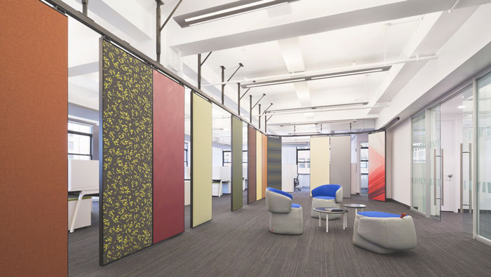 辦公區(qū)域的設(shè)計:懸掛的隔斷如一扇扇門將辦公區(qū)域擋在視線之外,但懸掛的隔斷不是死的而是靈活的,一扇扇可拉可合,開放的辦公區(qū)加上半封閉的個人辦公區(qū),兩者之間形成一個很好的結(jié)合,這樣的設(shè)計旨在消除弊端,同時也在為企業(yè)營造利于發(fā)展的辦公新格局。