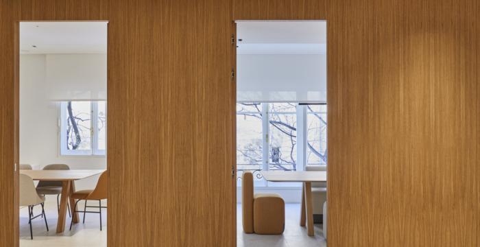 協(xié)作工作間被設(shè)想為中立的空間,為那些決定在辦公室工作的客戶提供各種活動(dòng),如視頻會議、簡短會議,甚至是合作活動(dòng)。各成員非但沒有制造阻礙意見交流的障礙,反而可以共用工作站,在需要更大隱私的時(shí)候可以選擇利用其他領(lǐng)域。