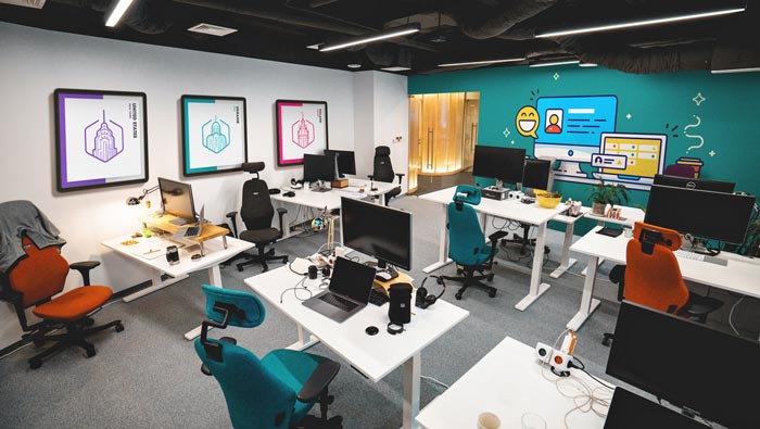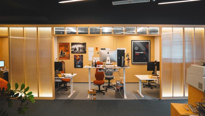 辦公場所的設(shè)計(jì):此處主要為后期測試與前端工作人員辦公的場所,在這里開放與私人相互結(jié)合在一起,開放的空間讓員工如一家人一樣,私人的設(shè)計(jì)讓員工擁有自己獨(dú)立的辦公空間,這樣做的目的就是給每一個員工留下獨(dú)立思考的空間,消除空間的弊端,讓辦公更加有趣。