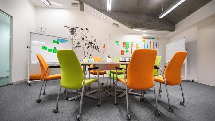 會議室的設(shè)計(jì):會議桌被設(shè)計(jì)師安置在空間的中心,這樣做的目的就是為了突出空間的重點(diǎn),四周也被設(shè)計(jì)師很好的加以利用,白色黑板、標(biāo)簽墻壁的相互搭配,讓會議變得有趣起來,讓一切難題都被記錄下來,這樣可以提升企業(yè)的辦事效率,讓遺忘在此次無處遁形。