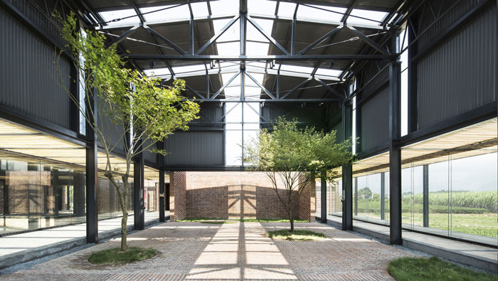 紅糖廠房景觀裝修設計:廠房位于區域的最里面,田園景觀環繞整個廠房,設計師之所以這樣設計,一來是滿足當地的需求,二來是滿足環保的需要,三來是滿足旅游的需要。