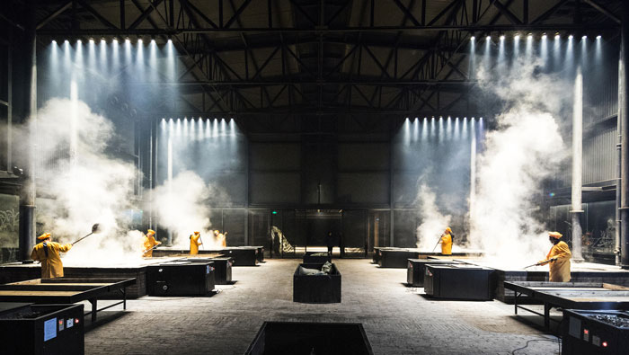 紅糖廠房車間細節裝修設計:這里強調的是對煙霧的處理,看似垂直向上的煙霧,實則也是設計師經過多次研究的結果,設計師考慮到煙霧對工作人員的影響,故此重點解決。