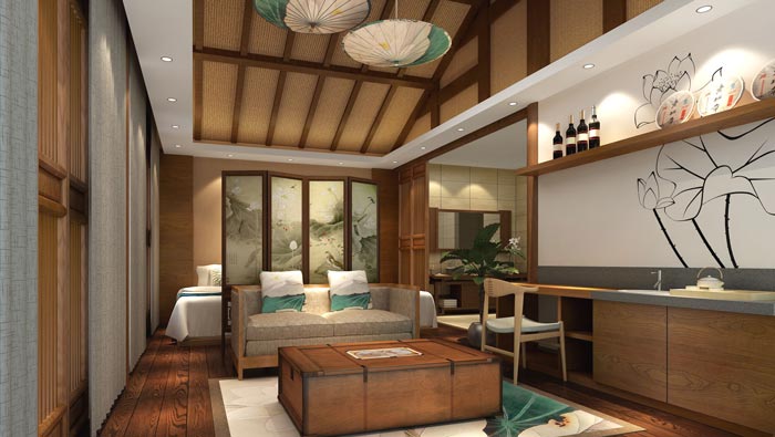 本次度假酒店裝修設計案例講解到此結束,在本次設計中,設計師將文化與當地特色結合在一起,目的就是打造一個特色的酒店空間,讓顧客在文化的熏陶下,對此地留下一個美好的回憶。