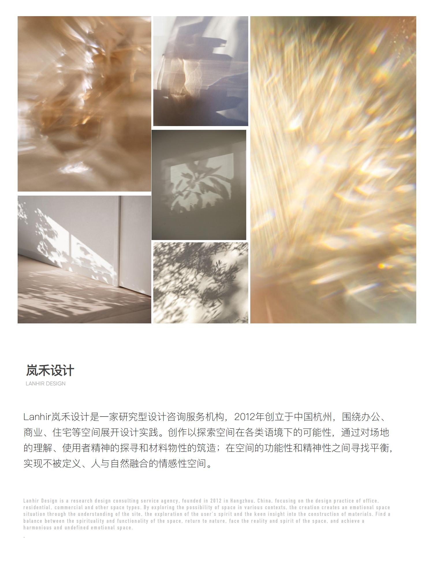 Lanhir嵐禾設(shè)計是一家研究型設(shè)計咨詢服務(wù)機構(gòu),2012年創(chuàng)立于中國杭州,圍繞辦公、商業(yè)、住宅等空間展開設(shè)計實踐。創(chuàng)作以探索空間在各類語境下的可能性,通過對場地的理解、使用者精神的探尋和材料物性的筑造;在空間的功能性和精神性之間尋找平衡,實現(xiàn)不被定義、人與自然融合的情感性空間。