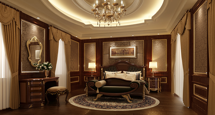 設(shè)計(jì)理念:本案的設(shè)計(jì)似乎每一處都能給人豪華大氣的感覺,深色咖啡色的搭配,每一處都散發(fā)著刺激人心靈的大氣豪情。尤其是弧線形輪廓與新古典的結(jié)合,重點(diǎn)部位咖啡色的完美搭配,呈現(xiàn)出來的大氣豪華,讓人感受心靈的升華。