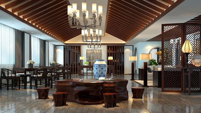 設計師考慮到建筑空間的原有風格及投資方需求,設計師決定采用新中式手法來打造會所,而非過往高檔場所常見的歐式調性。