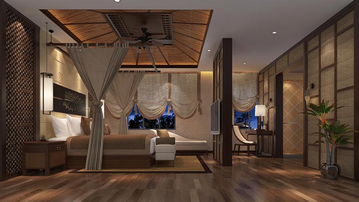 套房的設計:在這里中式裝飾更加明顯,也漸漸多了起來,就是希望讓人遠離外面的世界,雖然我們無法逃離現在的生活,但是設計師希望讓我們得到暫時的脫離,目的就是希望在這里讓客戶進行的思考,讓心情得到一次釋放,空間的跨越讓我們得到的是對人生的思考。