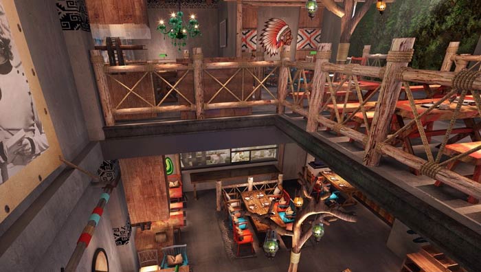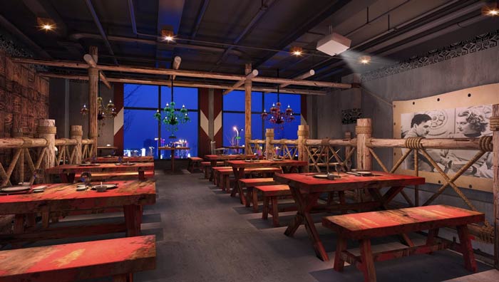 原始燒烤店二樓餐區裝修設計效果圖