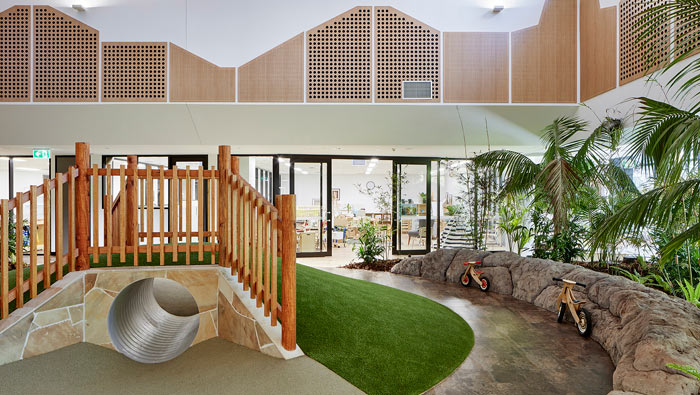 早教中心自然區(qū)設計:這里還原了很多自然屬性,孩子對于世界的認識是初步的,設計師希望讓孩子在這里逐步去了解自然,讓孩子通過自己不斷的發(fā)現(xiàn),激發(fā)孩子的想象力。