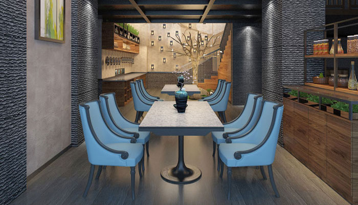 在餐廳設計中,設計師調用光、影以及配景、植物等表現手段來增強空間主題對人所產生的溫馨與浪漫。