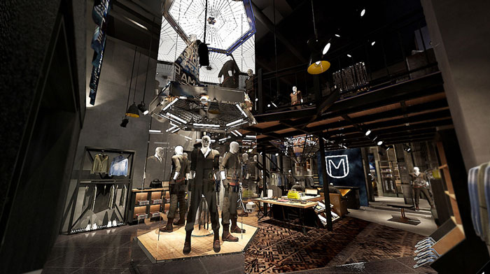 潮牌男裝專賣店二樓特效區域裝修設計案例效果圖