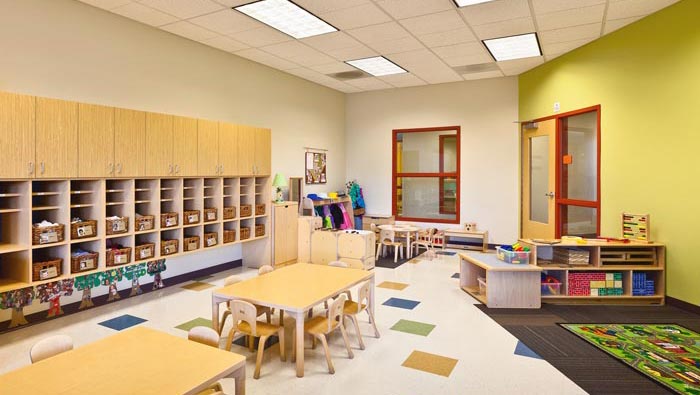 休息區域的設計:此處與教室的格局類似,但功能卻不同,此處是孩子的個人時間,在設計師看來每一個孩子都需要有自己的時間,讓孩子們自己去安排,我們不能扼殺孩子的天性,因為有時候我們做的一切不一定對孩子有好處,所有需要這樣一個空間,讓孩子獨立自主的完成某項事物,只有如此才能讓孩子不斷成長。